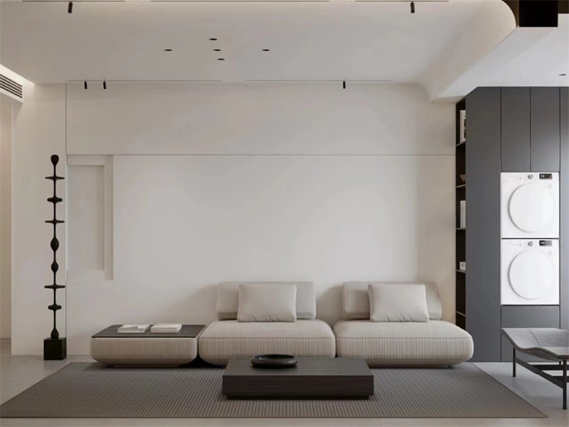 客廳整體采用灰白與極簡黑搭配,整體白色的墻面讓空間顯得更加簡約純粹,